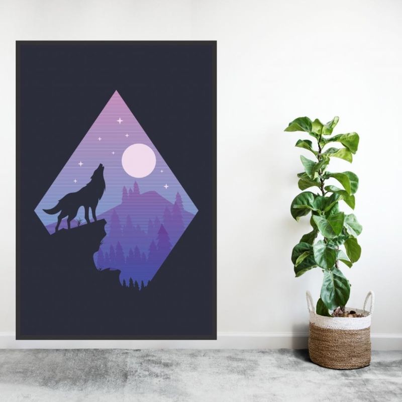 Quadro decorativo com moldura lobo uivando lua uivo 40x60 - Carrefour