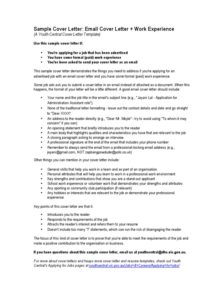 Pdf Sample Cover Letter No Work Experience Madihah Marz123 Academia Edu